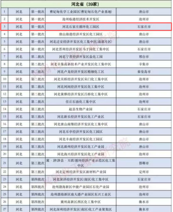 According to the national list of designated chemical parks, Hebei Province has 39 such parks. The Shijiazhuang Circular Chemical Park is among the first in the province to be included.